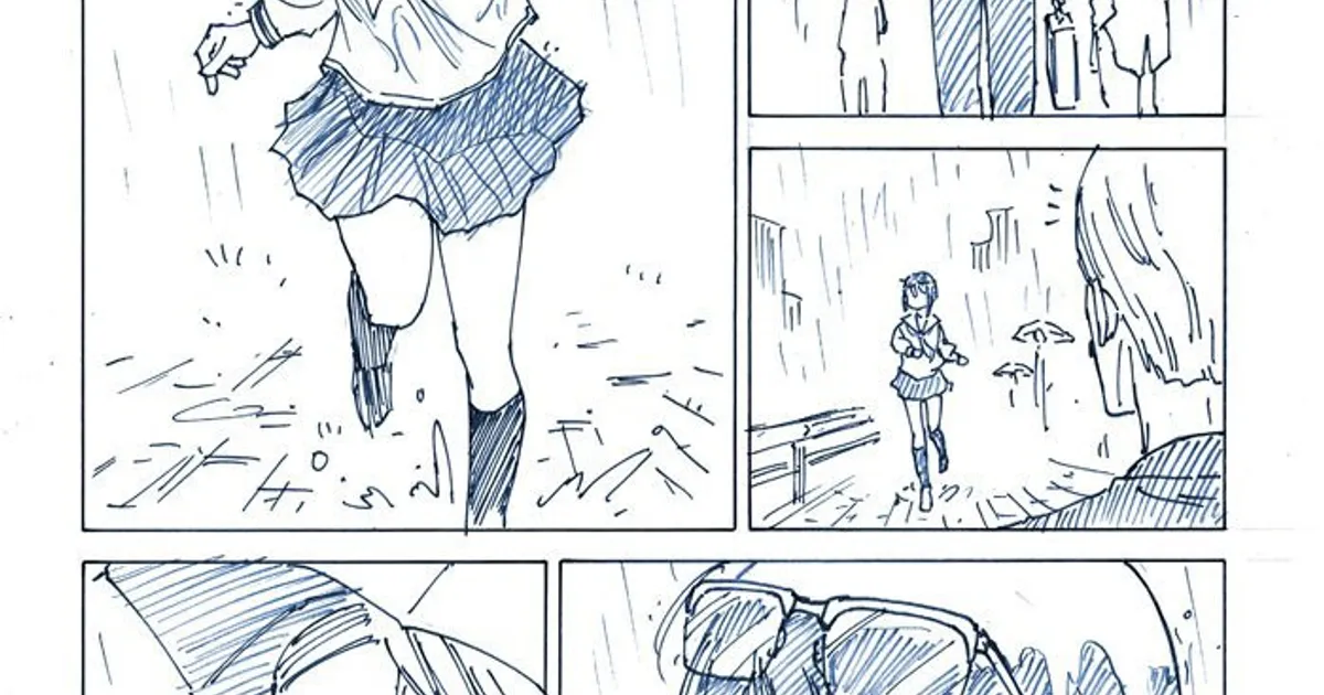 울면서 빗속을 달리는 여고생 만화